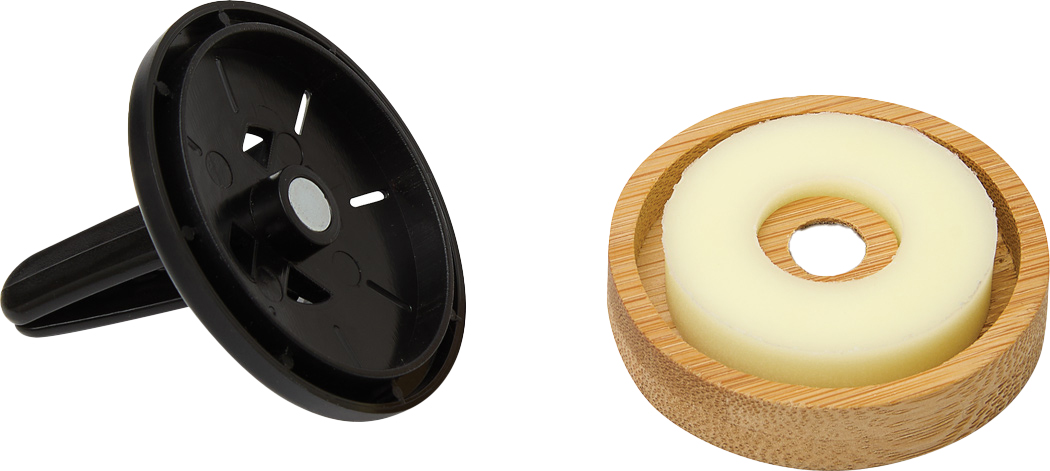 Profumatore per auto HAZE con clip per l'attacco alle prese d'aria dell'auto, anello in silicone con profumo di limone, realizzato in bambù e plastica ABS.