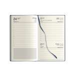 - Copertina in materiale sintetico cartonato con stampa del millesimo e chiusura con elastico in tinta