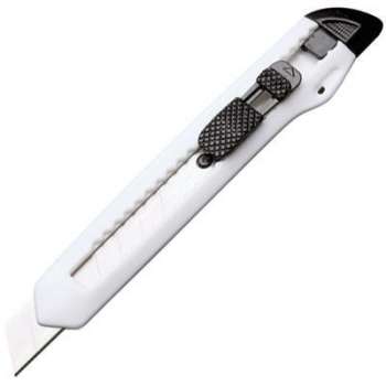 Trincetto MINI in materiale plastico colore bianco con lama in acciaio suddivisa in 13 sezioni spezzabili, per rinnovare la punta quando non taglia più.