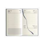 • Copertina in materiale sintetico cartonato con stampa del millesimo e chiusura con elastico di colore abbinato.